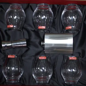 Multi-Purpose Tumbler Oslo Gift Set – 6 Crystal Glasses, 1 Flask & 1 Peg Measurer | 340ml