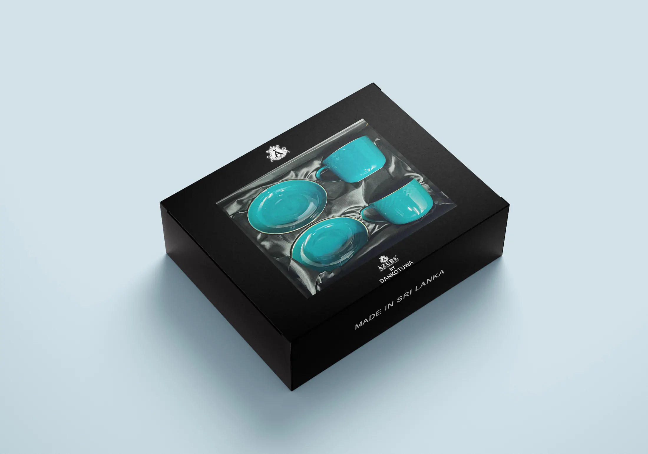 The Azure by Dankotuwa Water Drop Dark Green Gift Set is a tastefully crafted 4-piece porcelain collection, featuring two mugs and two snack bowls. Each piece showcases a deep, water-drop textured green glaze enhanced with 22-carat gold lining. Designed for both formal high-tea settings and casual get-togethers, this set delivers enduring elegance, durability, and easy maintenance.
