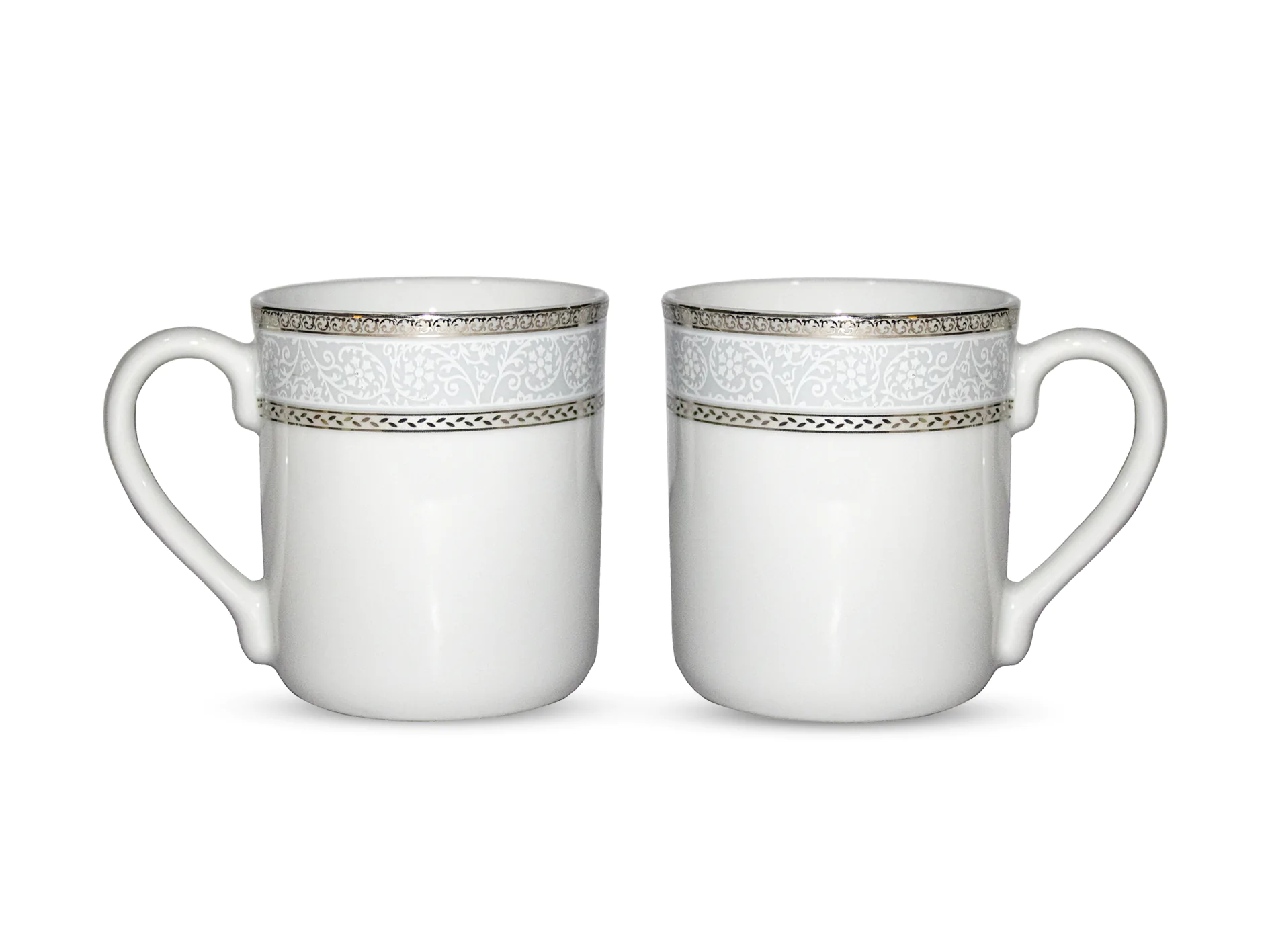 Elevate your beverage ritual with this beautifully designed set of 2 mugs, holding up to 300ml each. Meticulously crafted in Bangladesh, the serene floral detailing and lustrous platinum accents make this collection a standout in both functionality and style. A perfect choice for personal indulgence or thoughtful gifting.