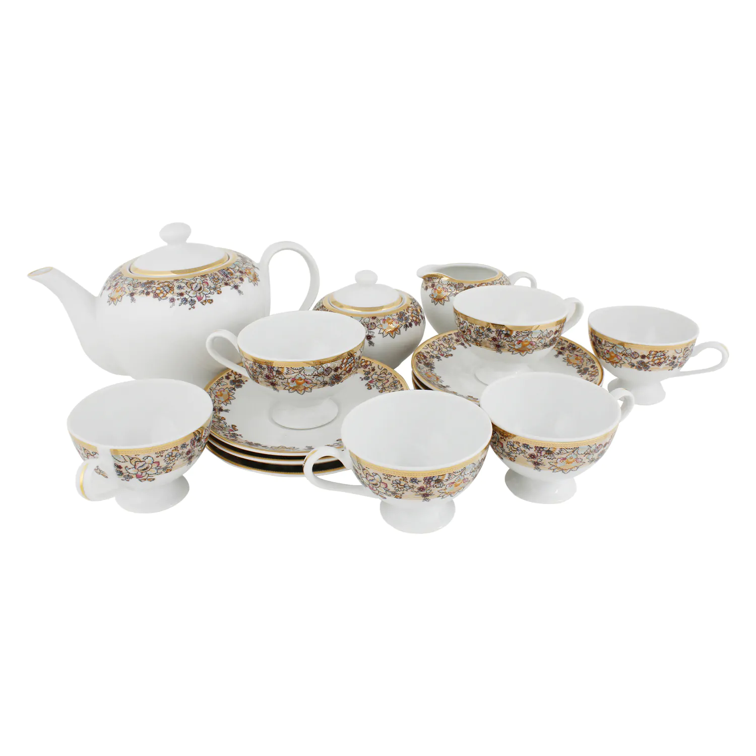 Formal 17-Piece Tea Set- Gold Trim
